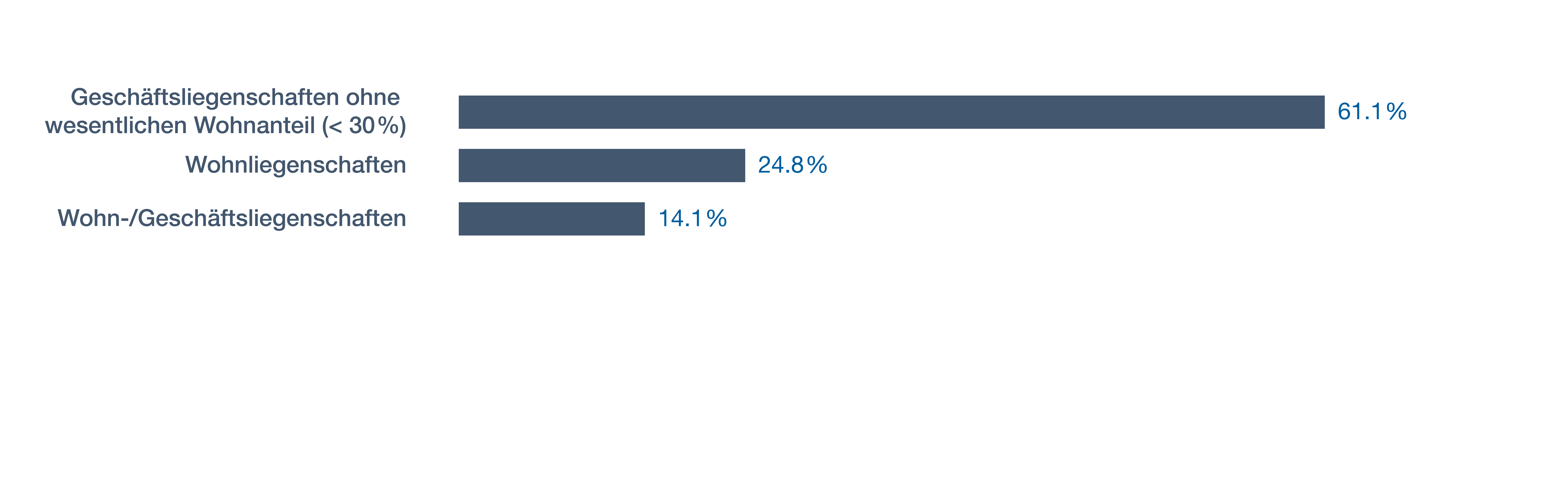 Soll-Nettomietertrag nach Geschäftsbereich | Soll-Nettomietertrag nach Region | Soll-Nettomietertrag nach Nutzungsart | Marktwert nach Geschäftsbereich | Marktwert nach Region | Gewichtete Fälligkeit Mietverhältnisse Geschäftsliegenschaften